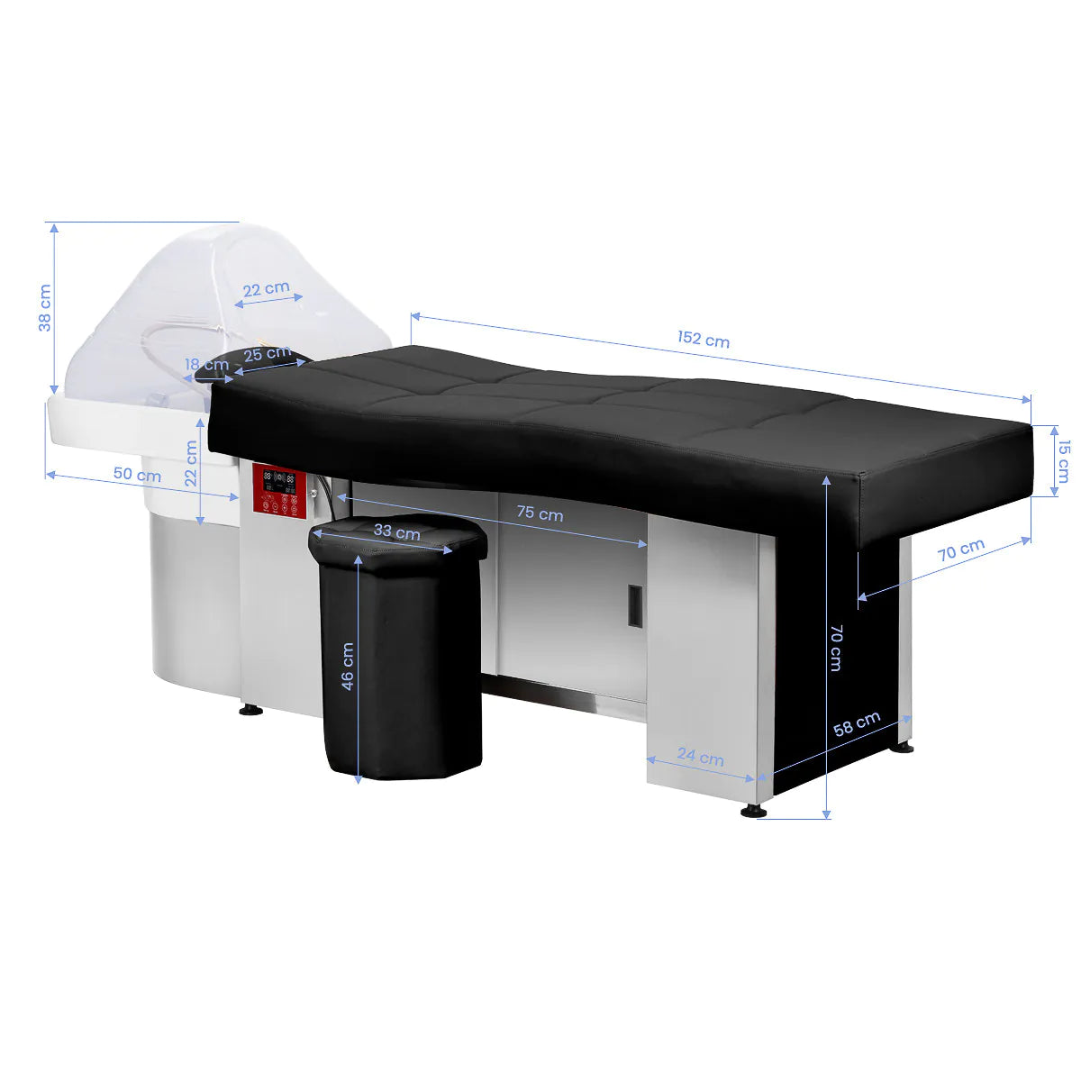 Il lettino SPA Head Spa 017 è una combinazione di funzionalità e design moderno. Dotato di una solida struttura in acciaio inox, garantisce stabilità e durata. Il lettino dal profilo ergonomico è rivestito in morbida pelle sintetica, garantendo il massimo comfort durante i trattamenti. Inoltre, lo spazio chiuso con anta scorrevole sotto il lettino consente di riporre comodamente cosmetici e accessori, rendendolo una scelta eccellente per i centri estetici e benessere professionali .